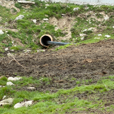 Desagüe de purines que después van a las canalizaciones del camino